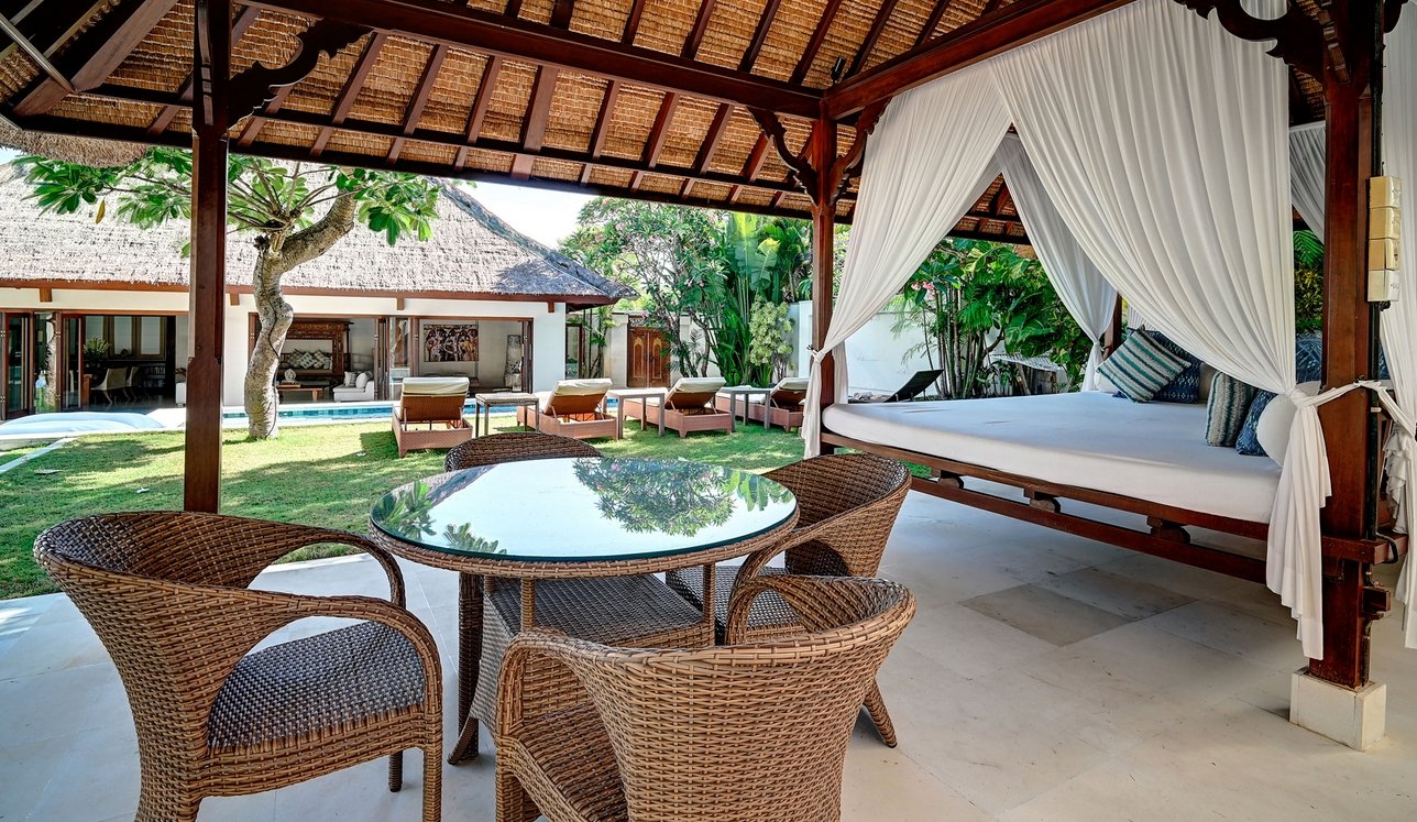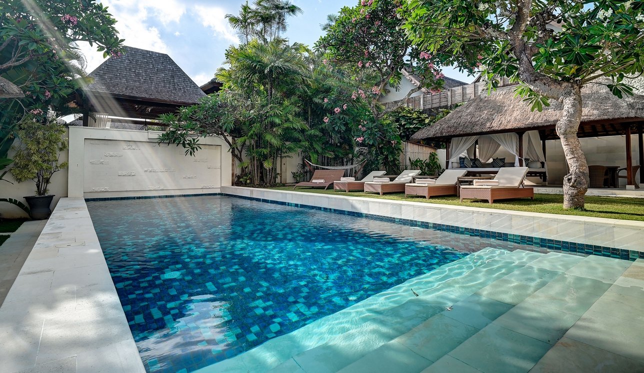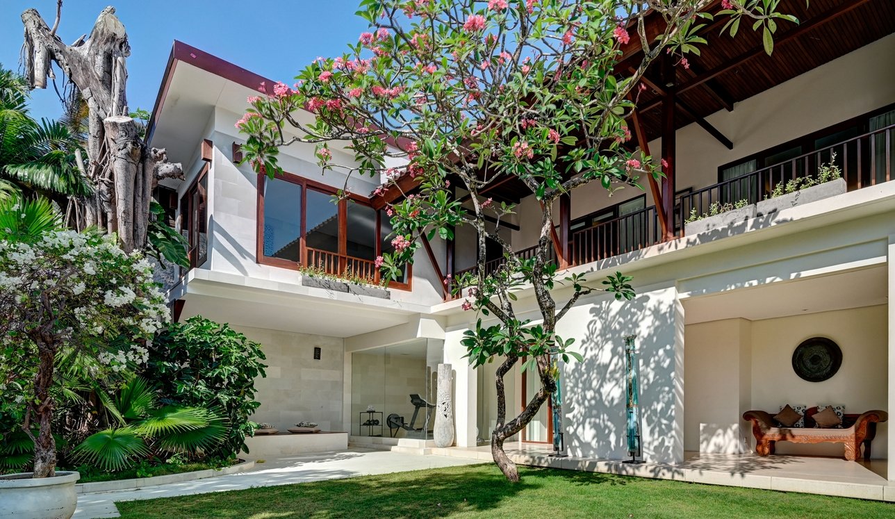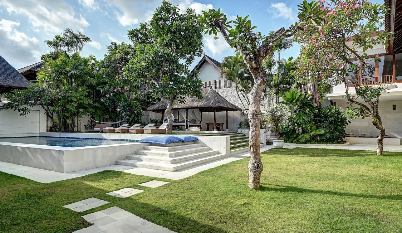 Step through the gates and into frangipani-scented gardens where serenity replaces the buzz of Seminyak—just moments away yet a world apart. This 5-bedroom sanctuary offers a rare blend of Balinese soul and modern comfort, with antique furniture, locally inspired artwork, and lush tropical gardens creating a timeless retreat.