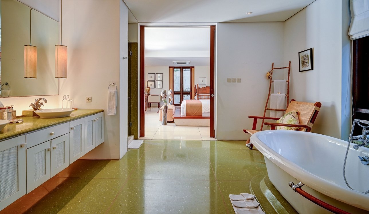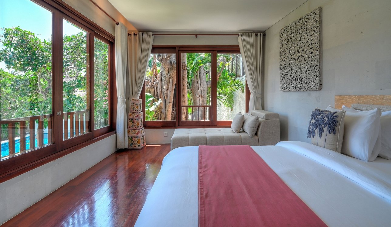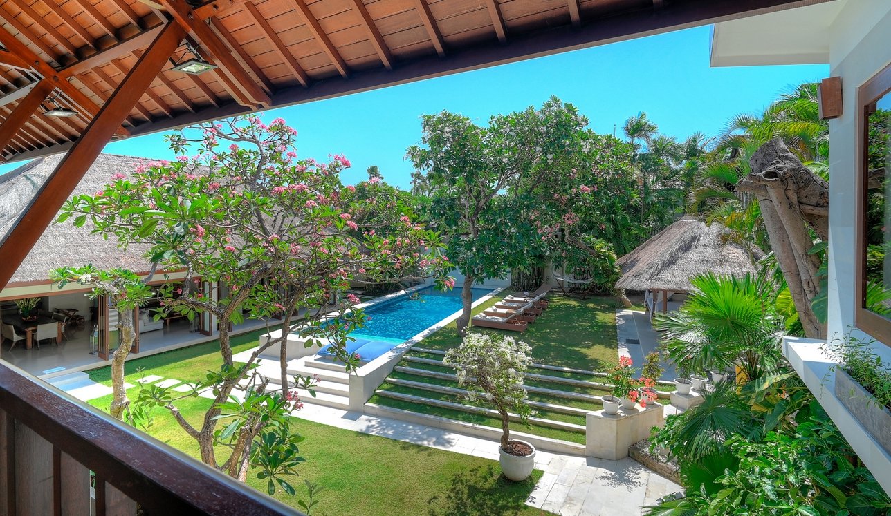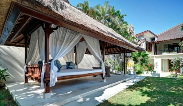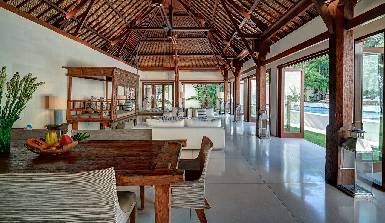 Step through the gates and into frangipani-scented gardens where serenity replaces the buzz of Seminyak—just moments away yet a world apart. This 5-bedroom sanctuary offers a rare blend of Balinese soul and modern comfort, with antique furniture, locally inspired artwork, and lush tropical gardens creating a timeless retreat.