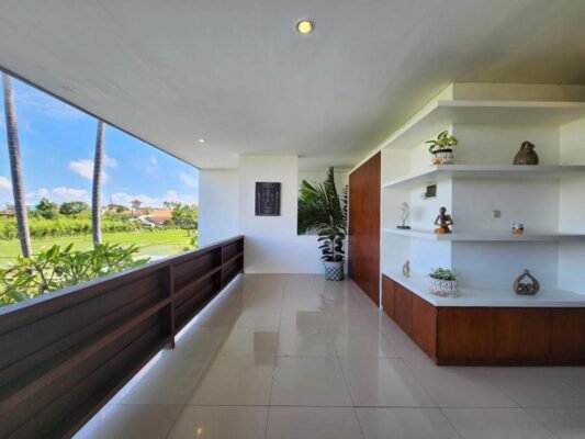 Head upstairs to the spacious wooden balcony where rice field views stretch across the horizon. It’s the perfect spot to sip morning coffee or watch a glowing Bali sunset.