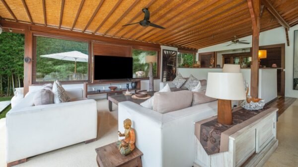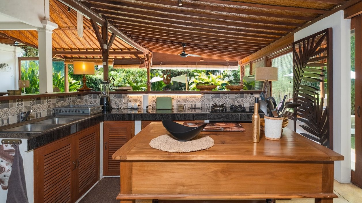 Enjoy the large private swimming pool, tropical garden, and shaded gazebo for lounging or dining. With BBQ equipment and even floating breakfast options, the villa makes outdoor living easy and relaxing.