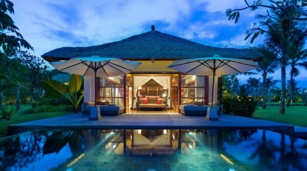 Escape to one of Bali’s most exclusive estates, nestled among sweeping rice terraces in the peaceful village of Kaba Kaba. This luxurious 8-bedroom villa spans over 3 acres, boasting 4 pools, a private tennis court, a home cinema, spa, gym, games room, and a full team of staff including a private chef and butlers.