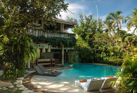 This wonderful villa with an ocean view, made from recycled boats wood, is located right on Brawa surfing beach just next to Seminyak. Set next to an important local temple, you are in for a true Bali beach experience....