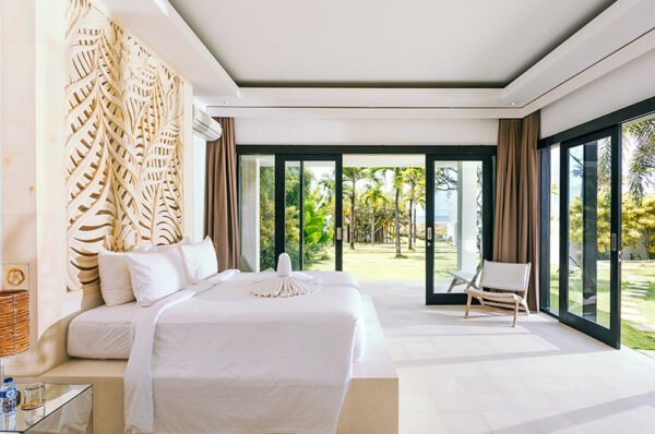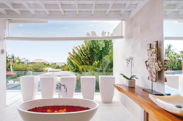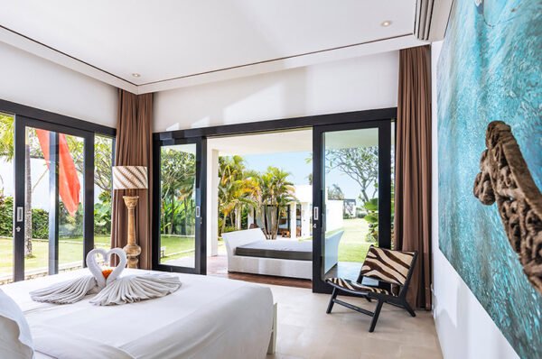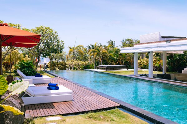 The 5 bedrooms villa beckons guests with the promise of comfort, privacy, space and fabulous ocean views. With elegant interiors and chic, white-walled, contemporary grandeur, this five-bedroom villa extends into a lengthy garden that offers surprises a sunken poolside lounge, a rooftop terrace, a 30-metre swimming pool, secluded bedroom pavilions and some enchanting tropical landscaping.