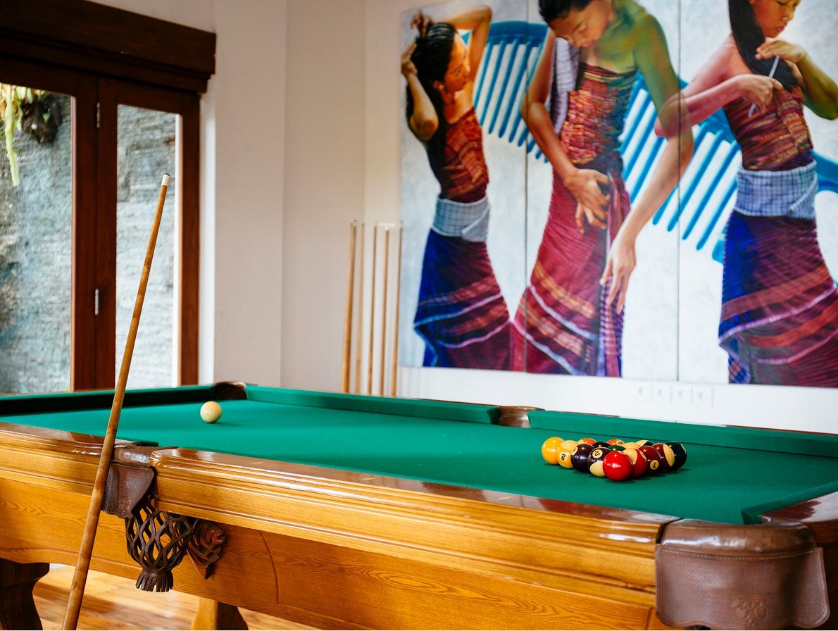 • Media room with 60” TV, surround sound & pool table
