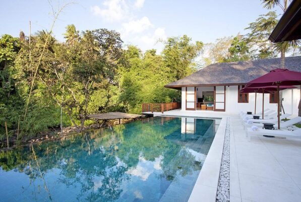 Escape the chaos of everyday life at this serene 5-bedroom riverside villa, nestled beside a jungle-fringed river just minutes from Bali’s iconic Tanah Lot Temple. With a 15-meter swimming pool, open-air lounges, lush gardens, and personalized service from a full team of staff, this peaceful retreat is ideal for groups and families seeking a true back-to-nature Bali experience.