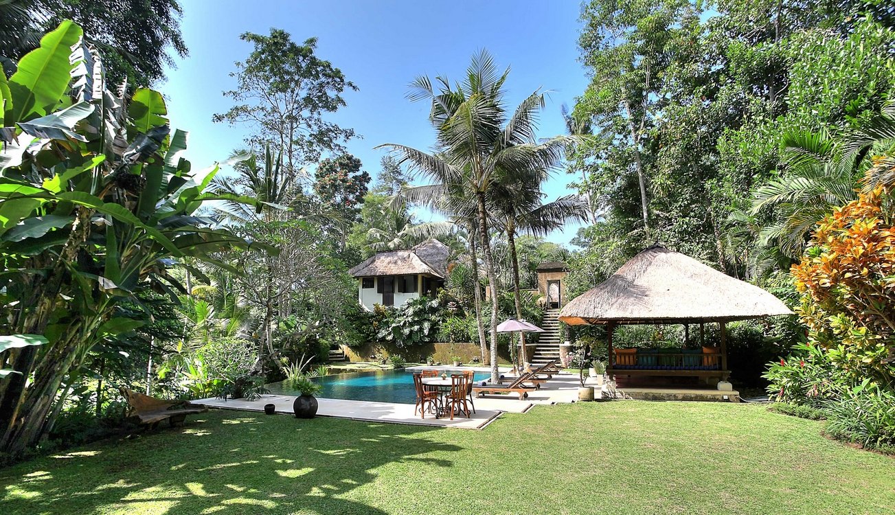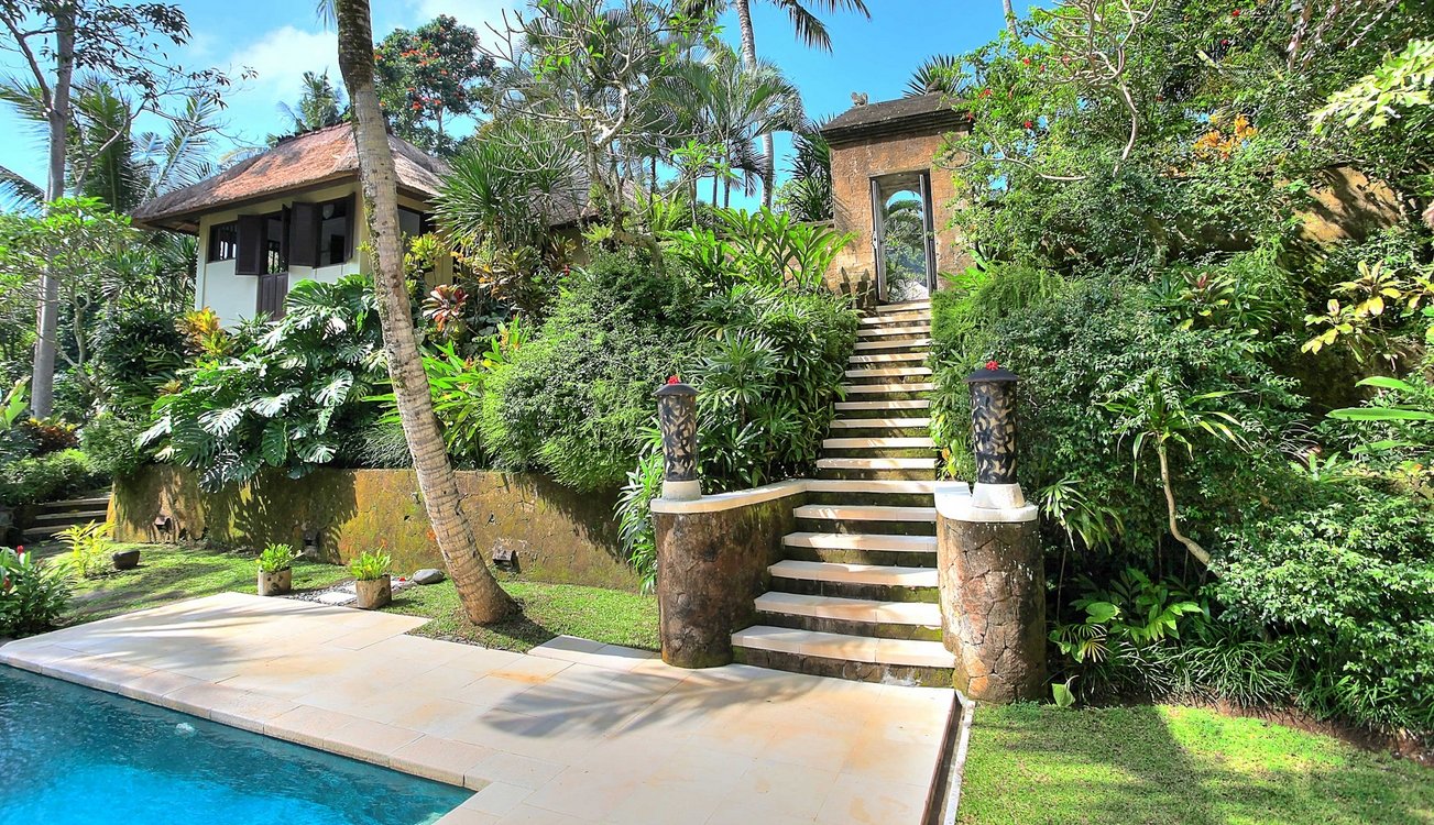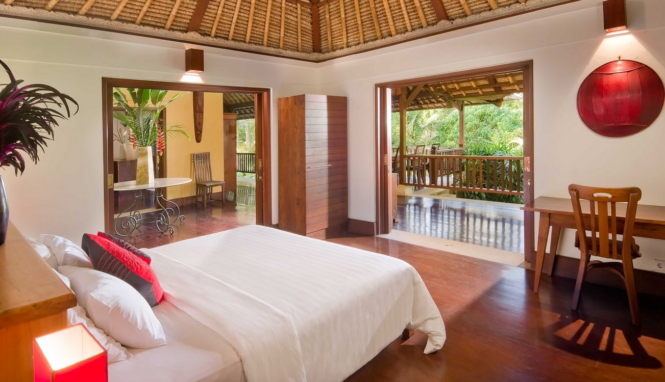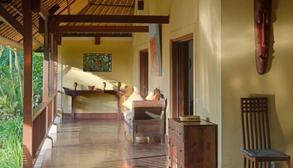 Perched high on a river gorge near Bali’s cultural centre, Ubud, The villa’s graceful architecture harmonises with its dramatic tropical environment. Inside, elegant teak furniture is complemented by clean lines, natural colours and local artwork.