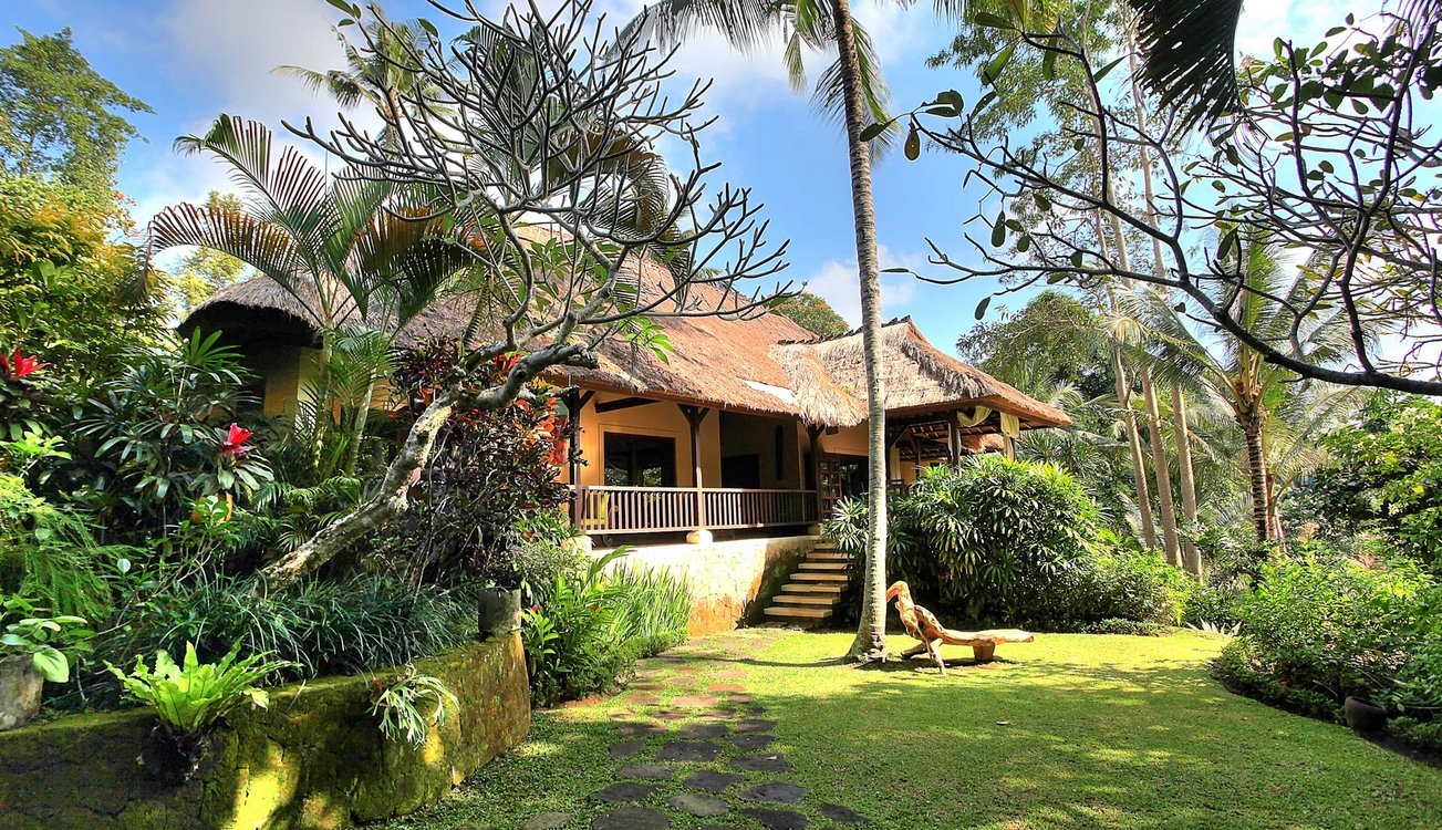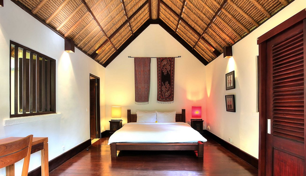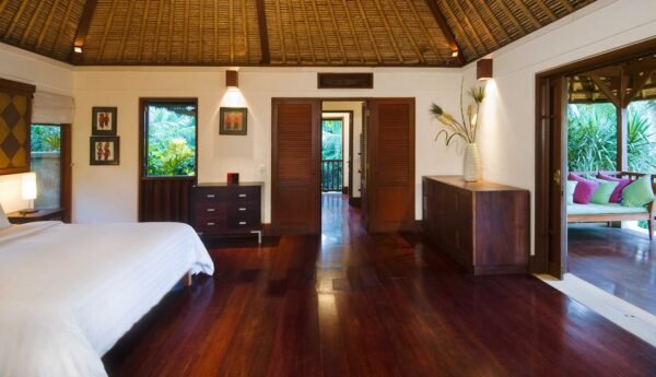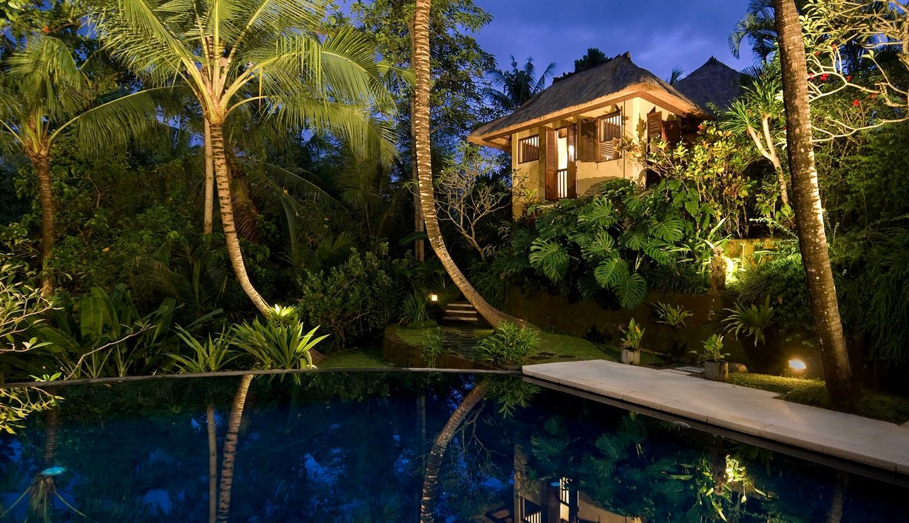 Perched high on a river gorge near Bali’s cultural centre, Ubud, The villa’s graceful architecture harmonises with its dramatic tropical environment. Inside, elegant teak furniture is complemented by clean lines, natural colours and local artwork.