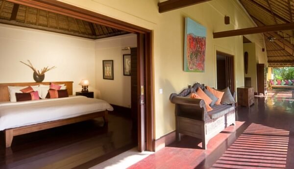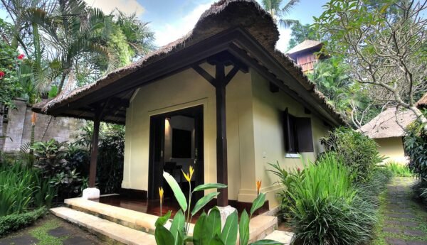 Perched high above a jungle-covered river gorge near Ubud, this elegant 4-bedroom villa blends classic Balinese architecture with serene natural surroundings. Enjoy breezy open-air living, stylish interiors, and a large tropical garden — perfect for families, friends, or those seeking a peaceful retreat in the cultural heart of Bali.