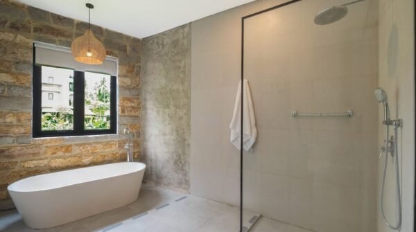 Inside, the villa blends modern aesthetics with traditional accents: