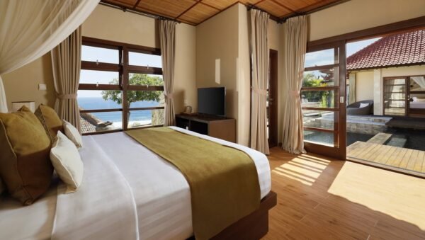 Each of the 7 bedrooms is positioned to face the pool, allowing sunlight and calm tropical views to fill the space. Large glass windows and minimalist design create a sense of airiness and warmth throughout.