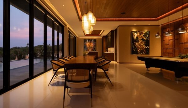 The villa balances playfulness with serenity, thanks to Feng Shui-inspired design. Flowing water features, lush gardens, and curated artworks create a calming atmosphere that grounds the soul.