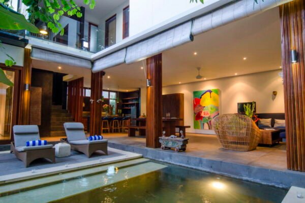 Tucked in a quiet lane between Seminyak and Canggu, this stylish 3-bedroom villa offers the perfect tropical retreat for families or a group of friends. Relax by the private pool under the shaded gazebo, sip sunset drinks on the upper balcony garden, or enjoy morning yoga with birdsong in the background.