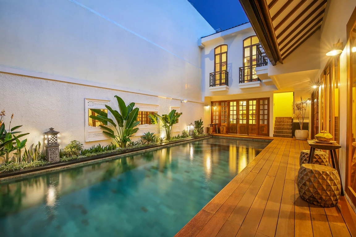 Just a 10-minute drive to Seminyak or Canggu, the villa is nestled among scenic rice paddies, combining traditional Balinese charm with modern comforts and vintage flair.