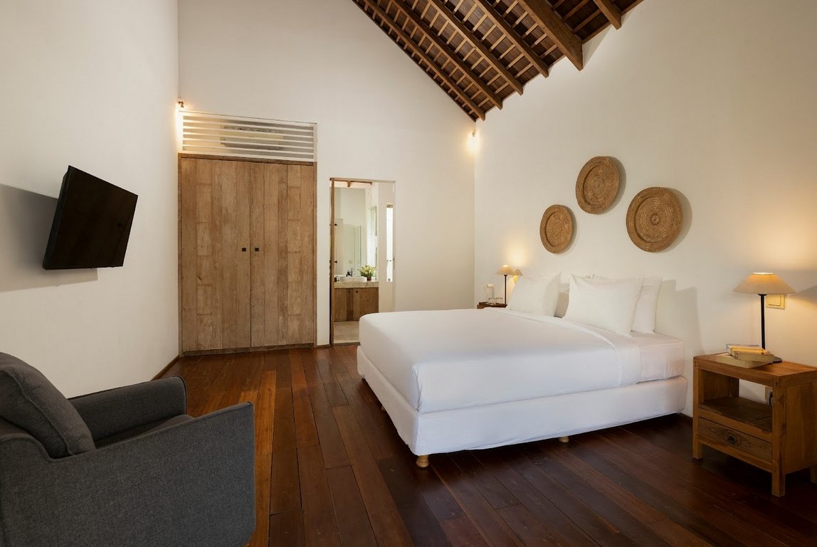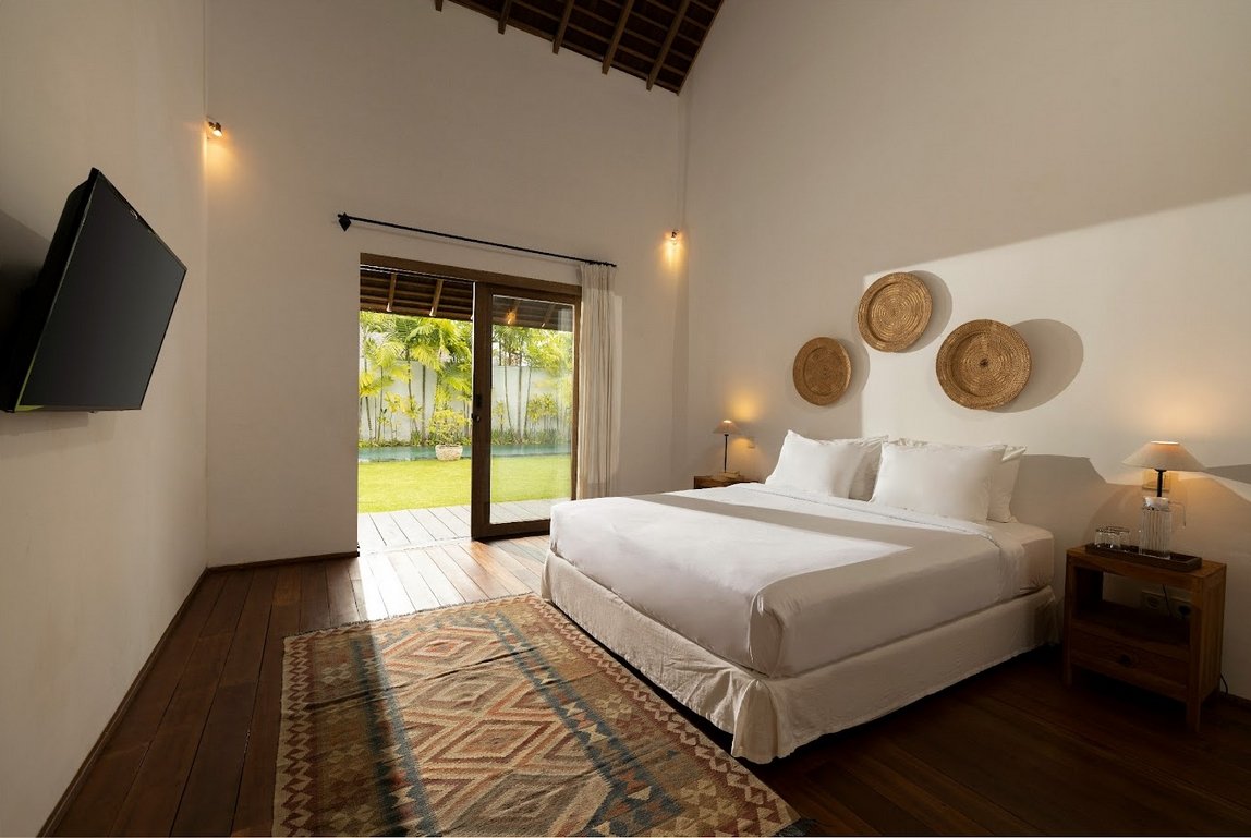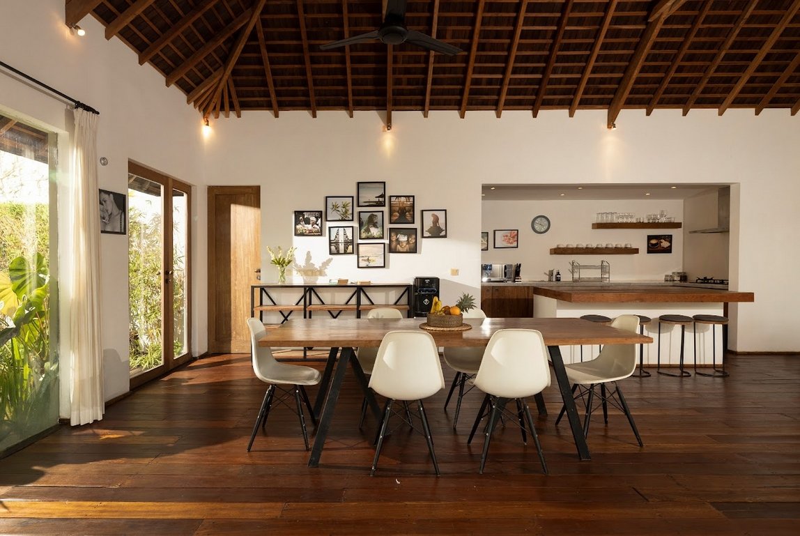 Three bedroom Umalas Villa is an excellent value three-bedroom villa with a 14-m swimming pool, lush gardens, and excellent staff. With comfortable furnishings and air-conditioned dining and living areas decked out in modern wood interiors, this home villa will make you feel right at home.