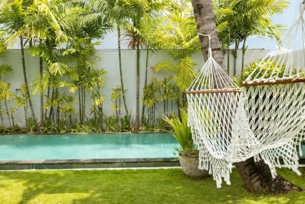 The second pavilion contains the bedrooms, ensuring privacy and comfort. The pool and lawn offer plenty of space to enjoy Bali’s eternal summer, perfect for sunbathing or relaxing in a hammock strung between coconut trees. Bring your yoga mat outside to unwind, stretch, and breathe in the fresh outdoor air.