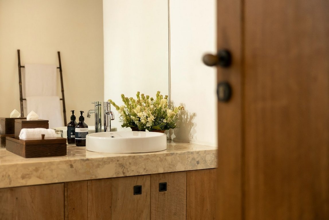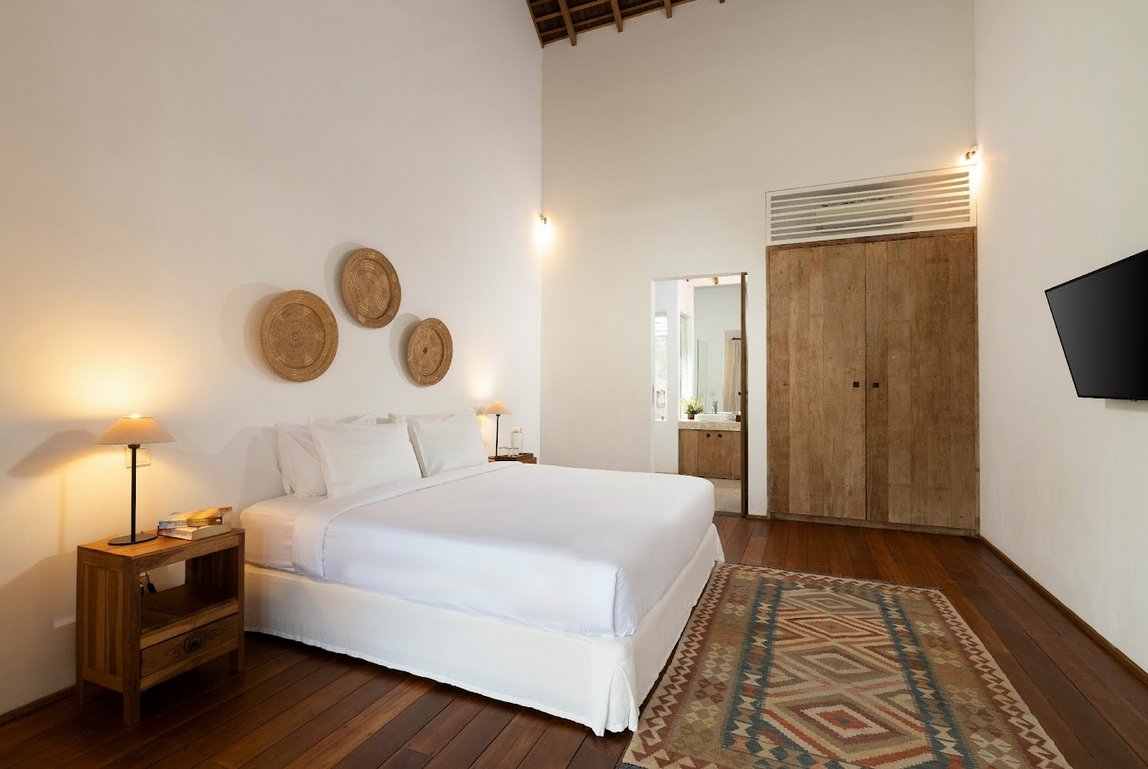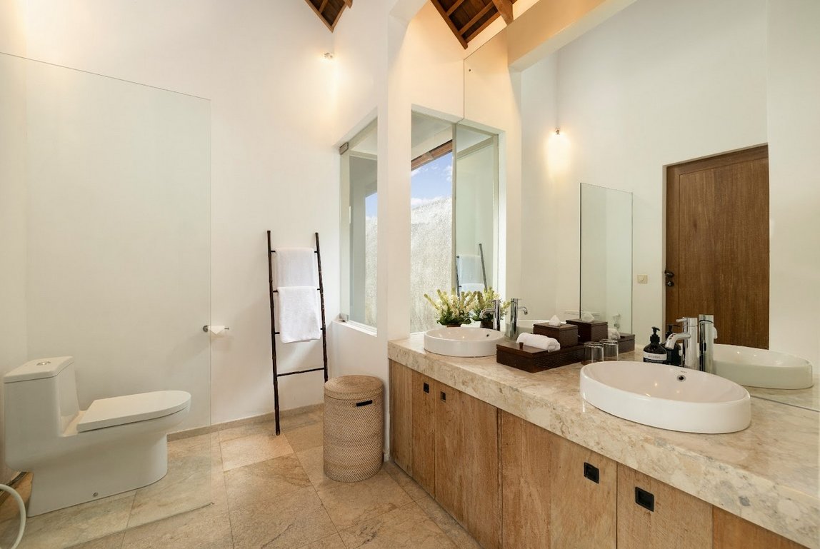 Two additional ensuite bedrooms each come with king-sized beds and spacious bathrooms featuring rainfall showers. These rooms also open out to the pool area, providing a perfect view to soak in Bali’s vibrant summer atmosphere from the comfort of your room.