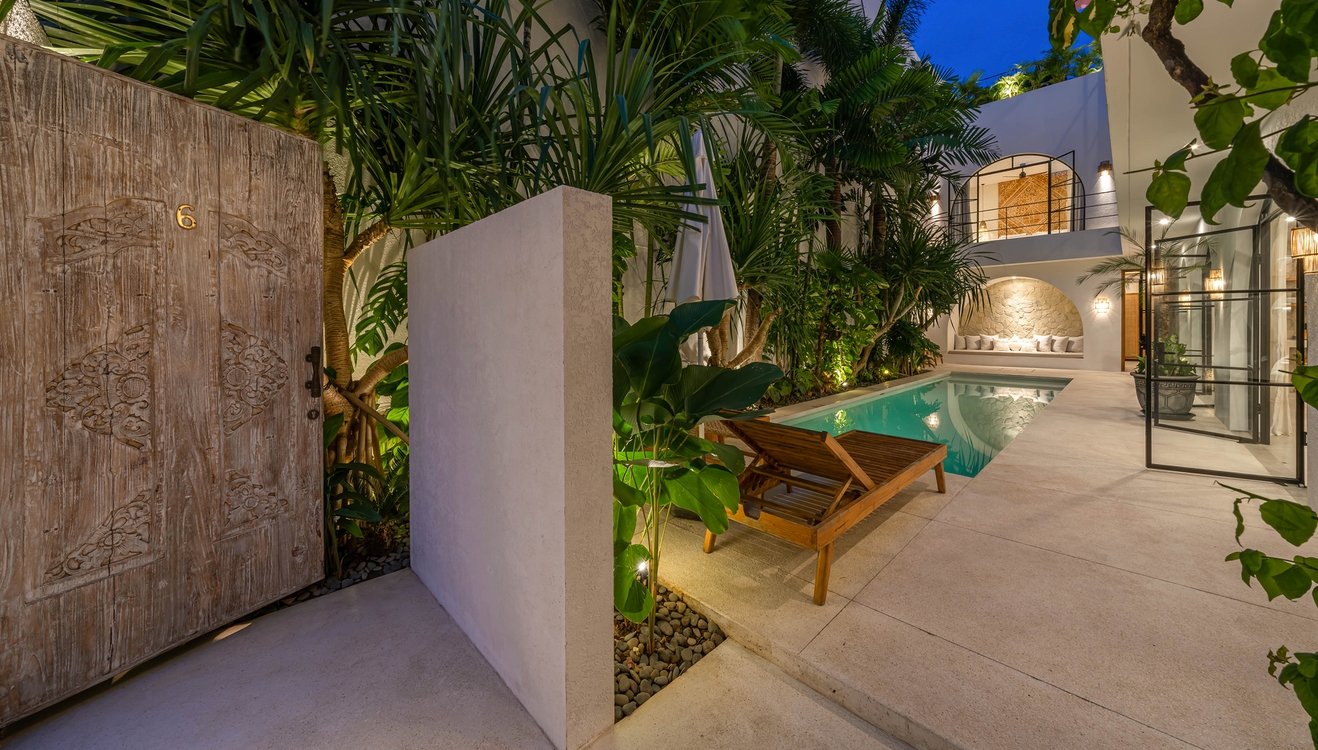 Hidden in the peaceful neighborhood of Umalas, this 6-bedroom modern retreat blends stylish architecture with tropical comfort. Just minutes from the vibrant scenes of Seminyak and Canggu, it offers the perfect balance between serene privacy and easy access to Bali’s best dining, shopping, and beach clubs.
