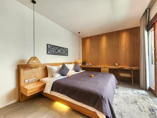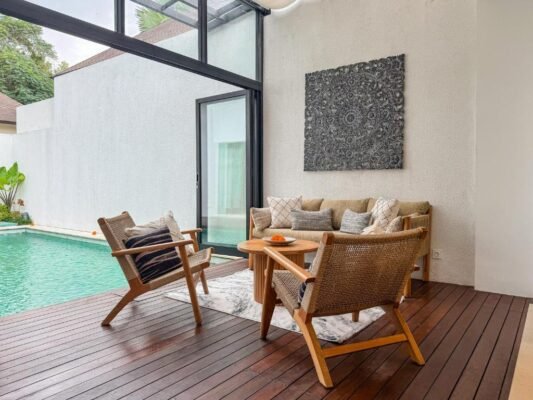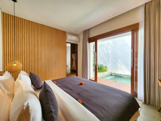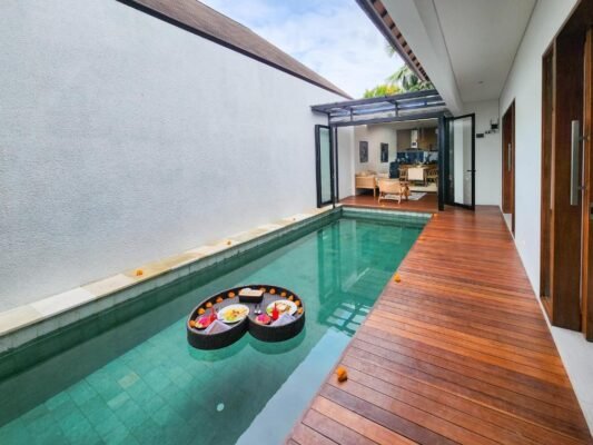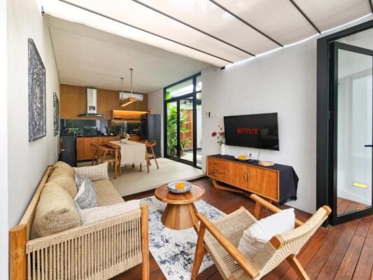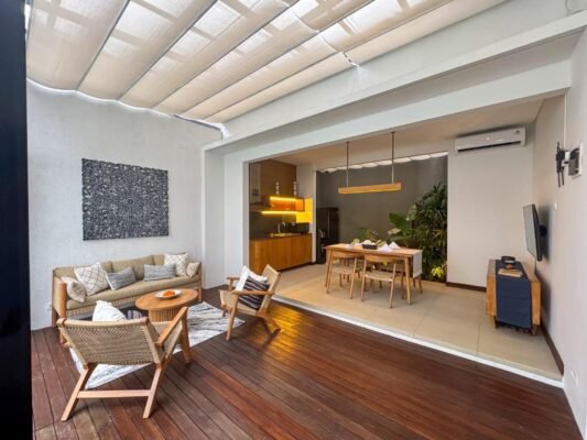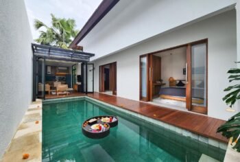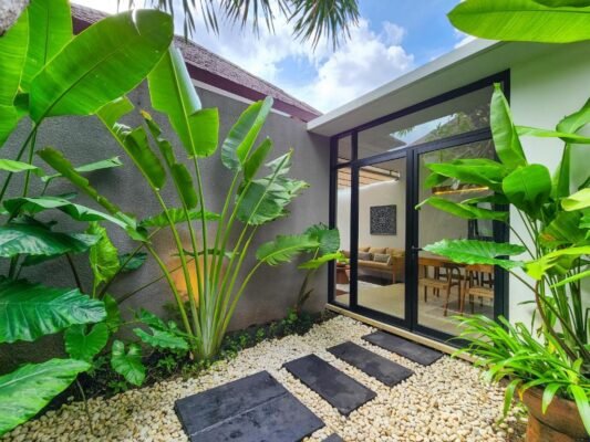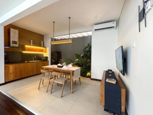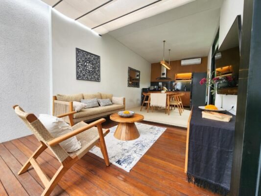 Tucked away in the peaceful neighborhood of Umalas, this stylish two-bedroom villa is perfectly positioned between Seminyak’s vibrant energy and Canggu’s trendy vibe. Here, you’ll enjoy the balance of privacy, comfort, and easy access to Bali’s best cafés, restaurants, beach clubs, and shops.